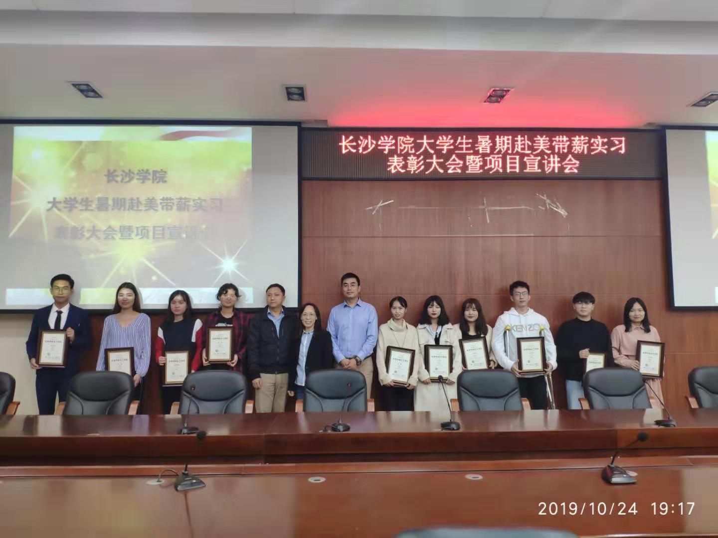 10月24日晚七点,长沙学院赴美带薪实习表彰大会在我校老图书馆一楼会议室举行。国际合作与交流处副处长青锋、土木与工程学院副书记杨群英及中国对外友好合作服务中心相关领导出席了本次活动。