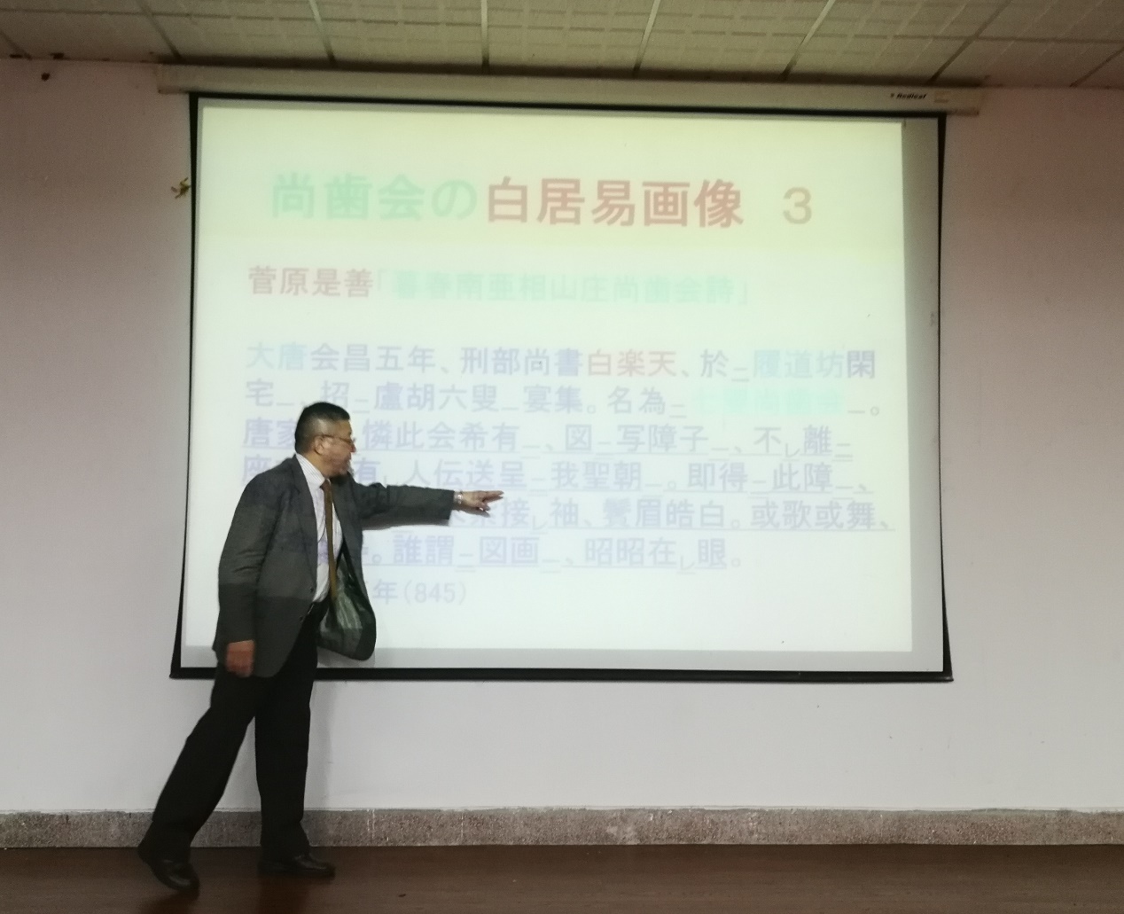 吉原教授将中国诗人白居易的唐诗和同时代日本诗人的作品进行对比,详细介绍了白居易的生平事迹。通过叙述其不同时期的主要经历向我们再现了诗人白居易的人生轨迹,并着重强调了诗人白居易和诗人元稹的深厚友谊,向我们展现了一个有血有肉,情感细腻的唐代大诗人形象。吉原教授特别通过展示自己实地调研的成果,讲述了中国唐代灿烂辉煌文化对日本的深远影响,以及中日两国历史悠久的文化交流。